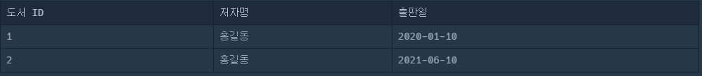 도서 정보 테이블에 있는 도서 아이디를 가져와 도서 ID 칼럼으로 별칭을 지어준다. 물론 도서 ID도 두 테이블에 서로 중복되는 내용이 없어서 따로 B.을 붙여서 지정을 안해줘도 되지만 개인 선호도나 팀 환경에 따라서 작성하면 된다.