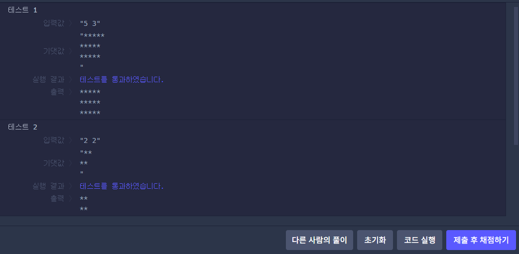 이렇게 각 a, b의 값만큼 사각형이 나오게 되며 문제 풀이를 성공하게 된다.